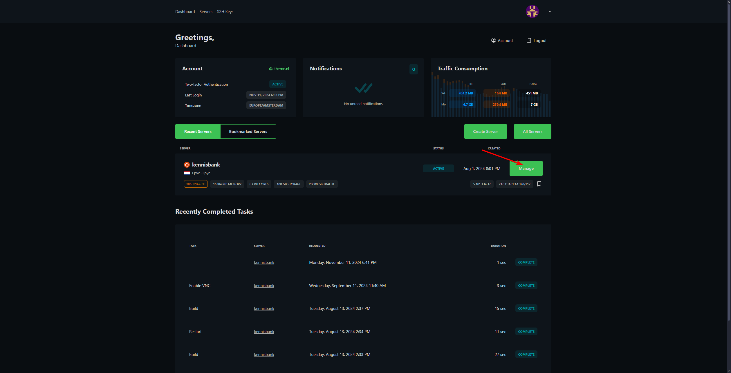 - Zorg ervoor dat je VPS aanstaan en klik dan op VNC-logo.