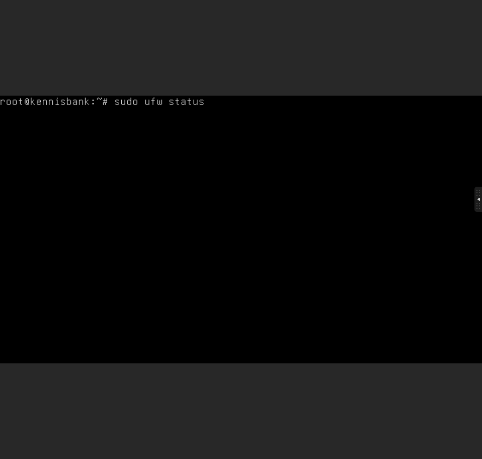 - Om te controleren of dit gelukt is, type je: sudo ufw status.