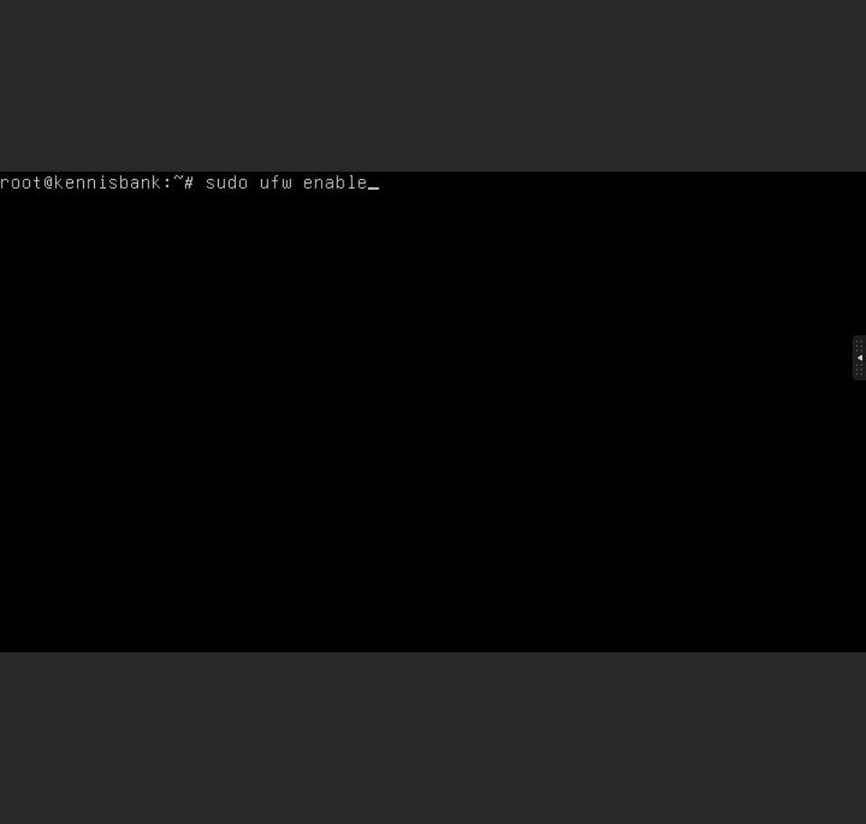 - Ook moeten we zeker weten dat de firewall aanstaat. Type hiervoor: sudo ufw enable