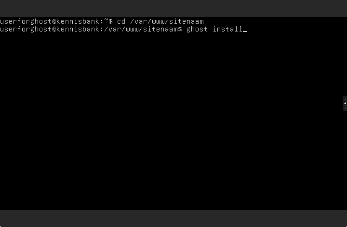- We gaan nu Ghost installeren doe dit door ghost install of als je het wil testen en lokaal wilt werken doe ghost install local