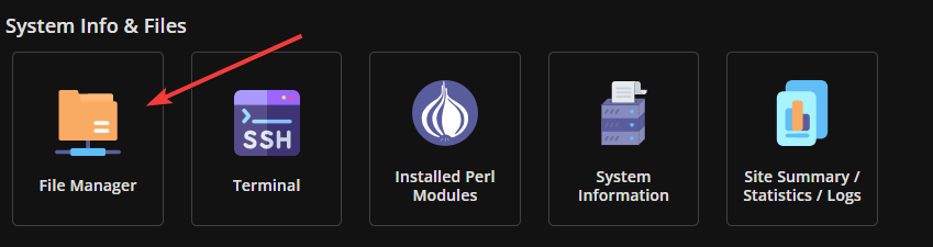 Scroll naar beneden tot System Info & Files en klik op File Manager.