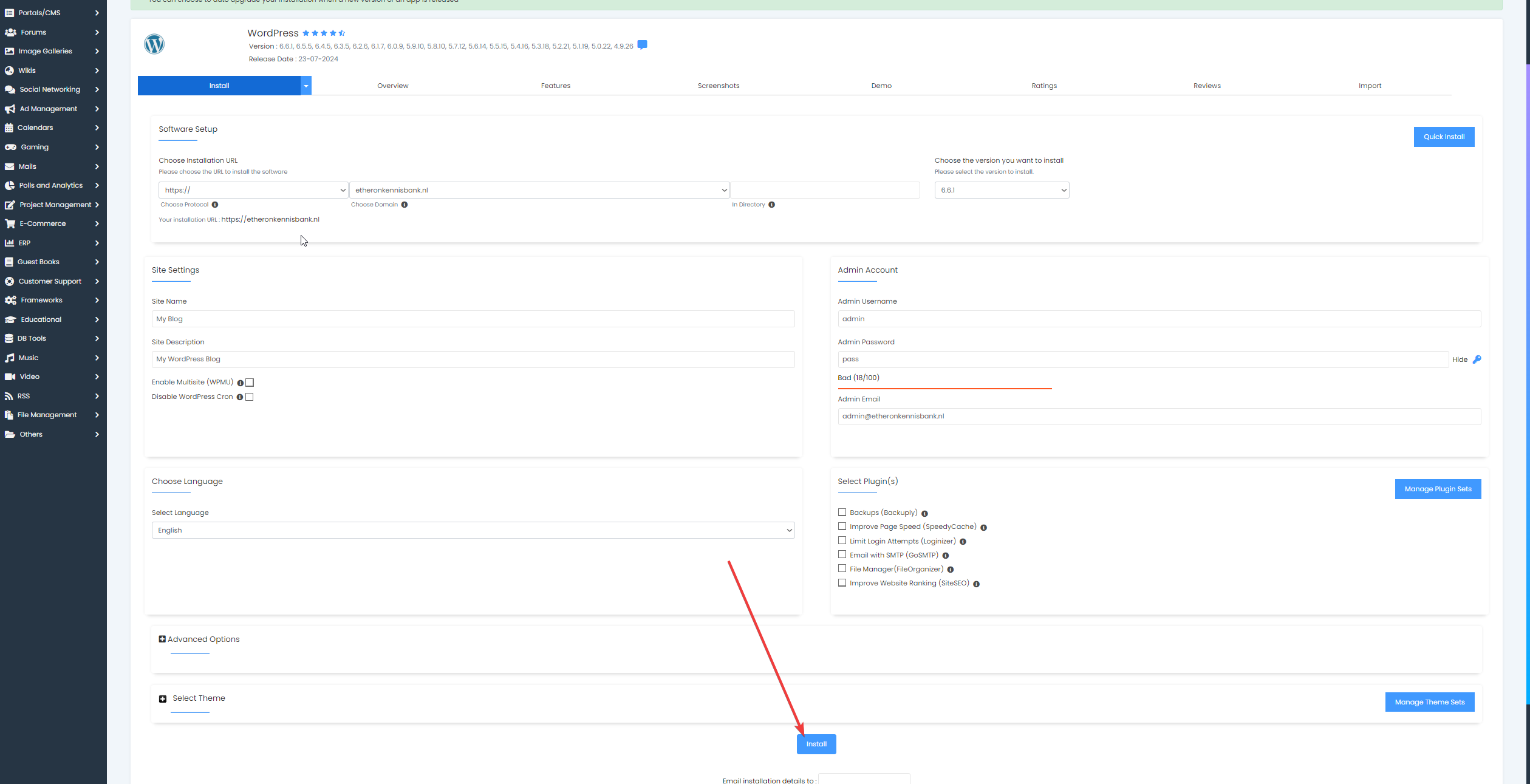 - Klik nu onderaan de pagina op Install. Wacht totdat de installatie is voltooid.