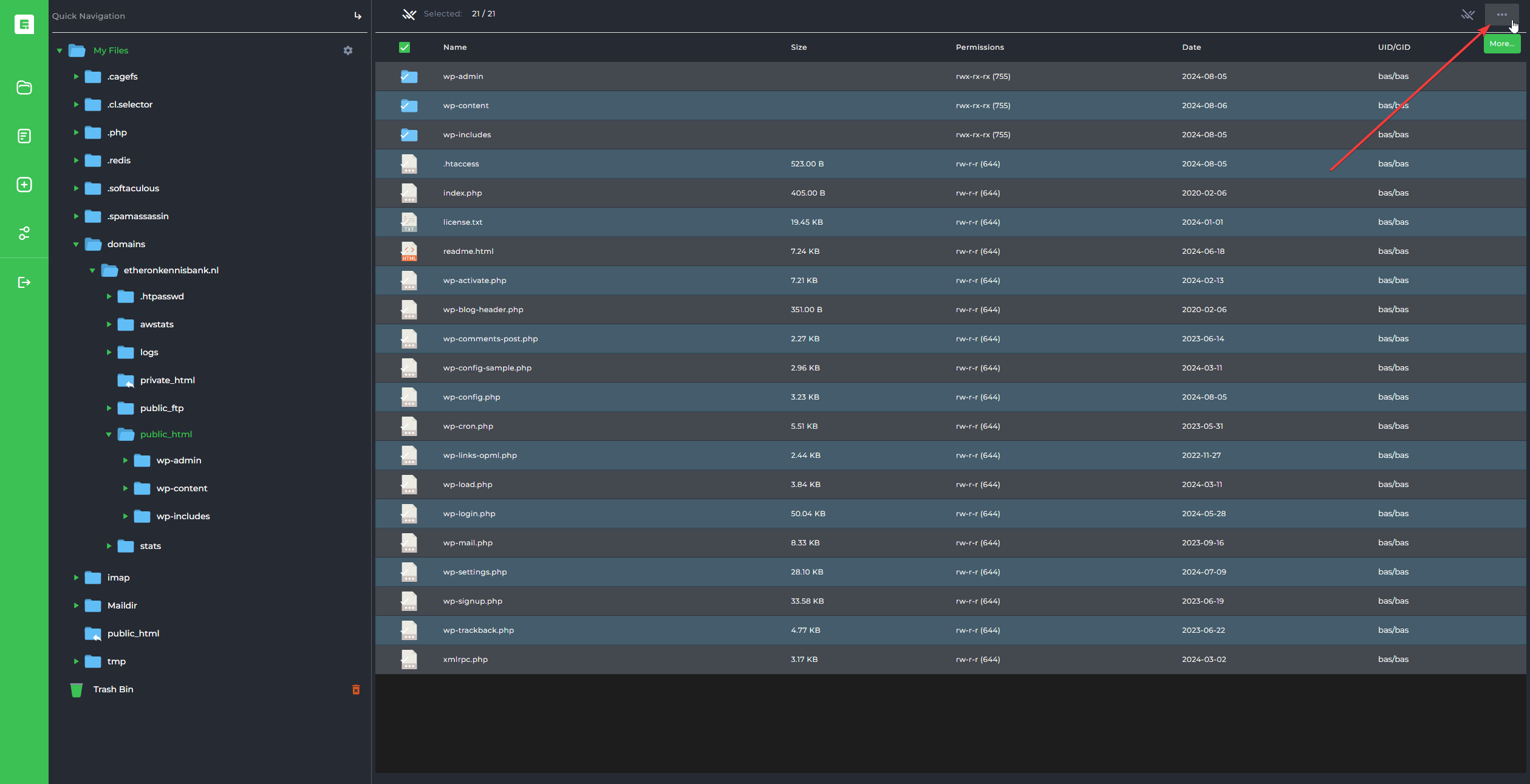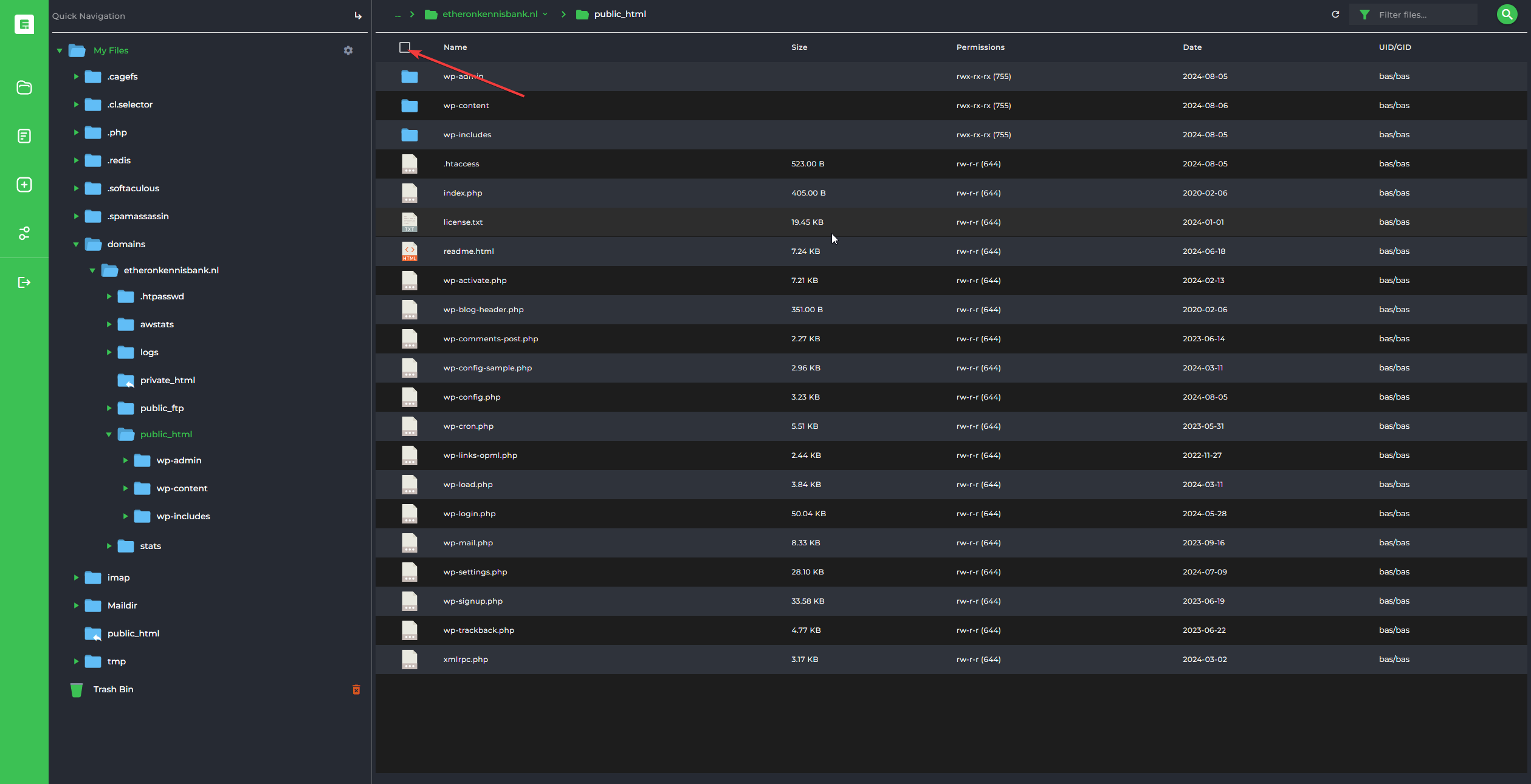 Klik op het vierkant linksboven. Dit zorgt ervoor dat alle bestanden geselecteerd worden.