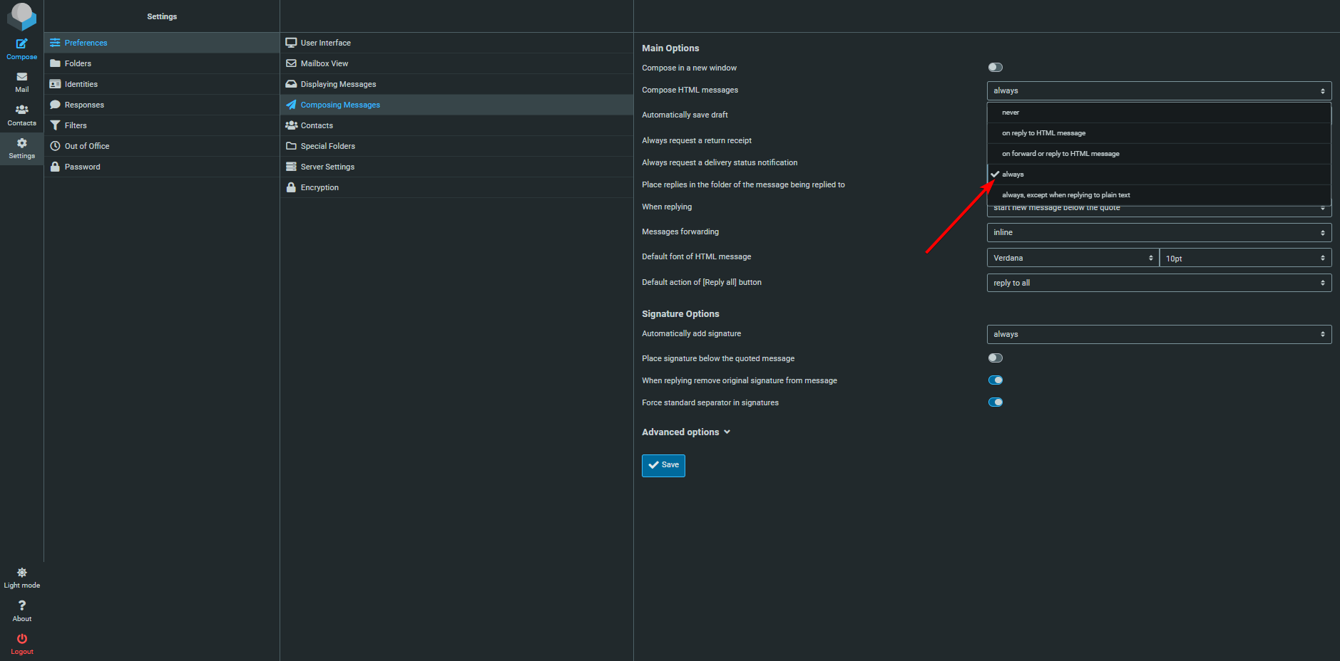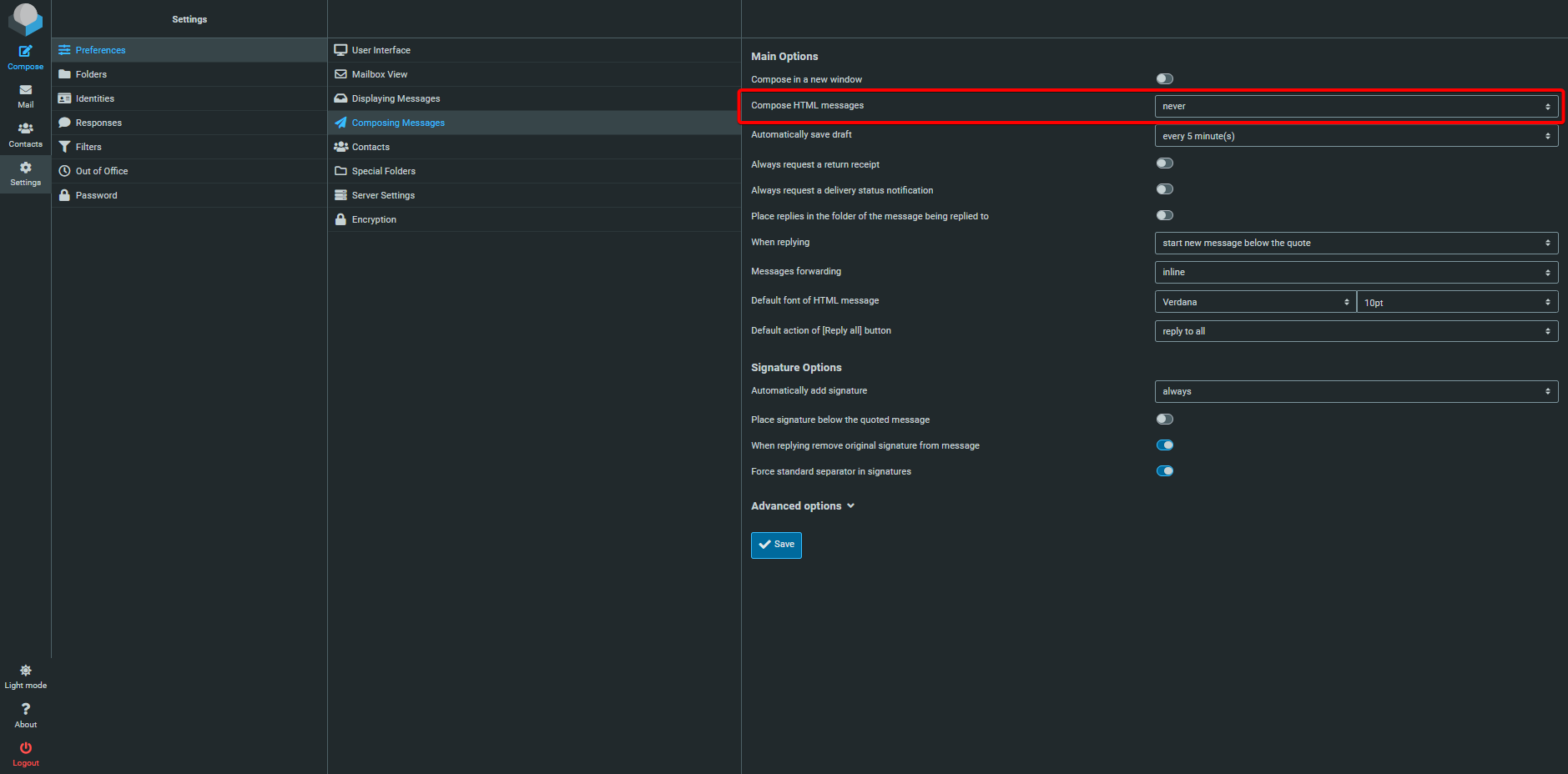 - Ga naar Preferences en klik vervolgens op Composing Messages.