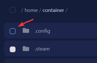 - Zorg er voor dat het .config mapje niet geselecteerd is. Hier staan alle instellingen en wereld bestanden in.