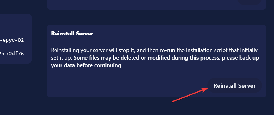 - Ga vervolgens naar Settings en klik op Reinstall server