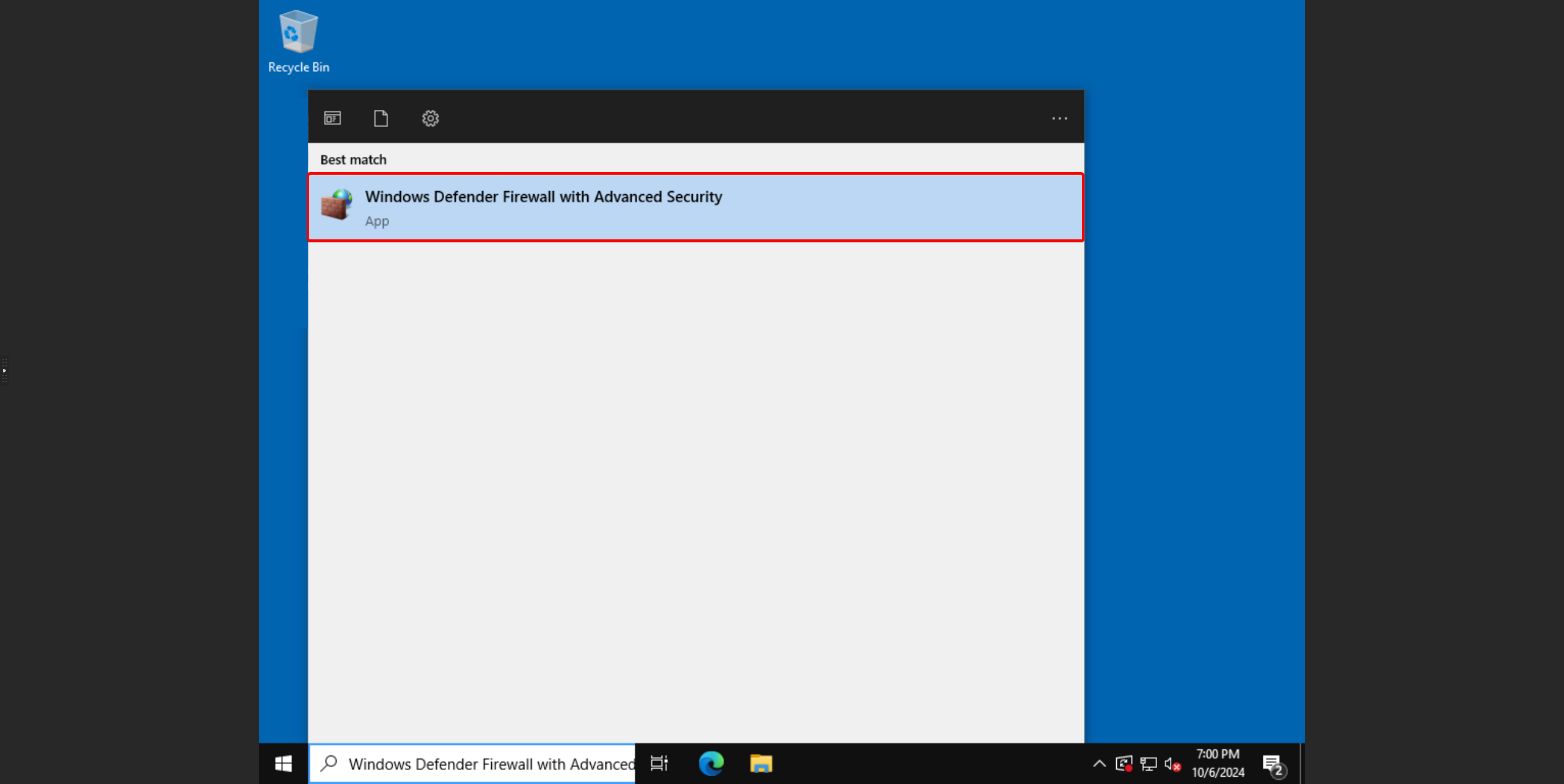 - Zoek naar "Windows Defender Firewall with Advanced Security" en klik erop.