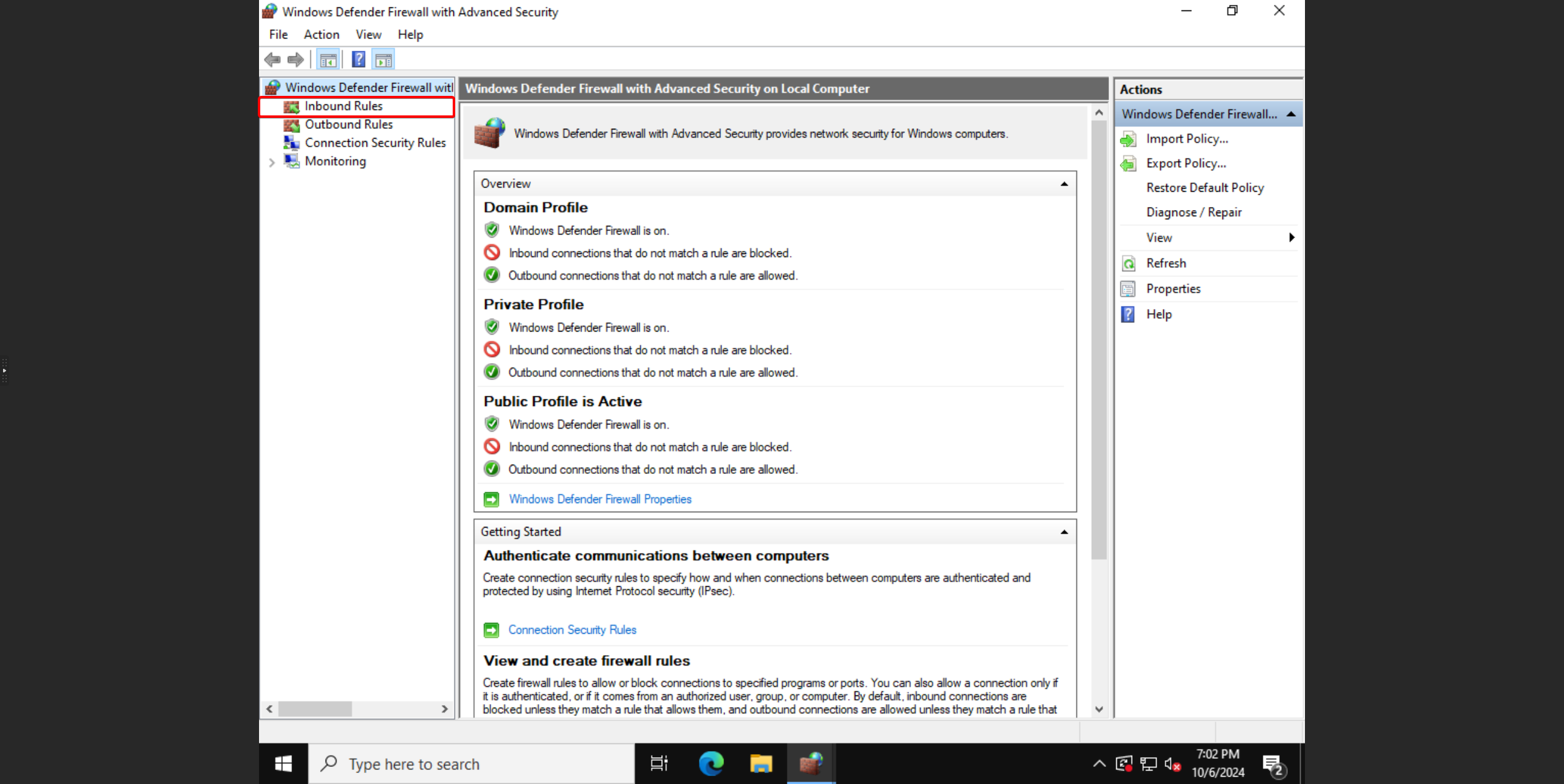 - Klik in het linkermenu op **Inbound Rules. **