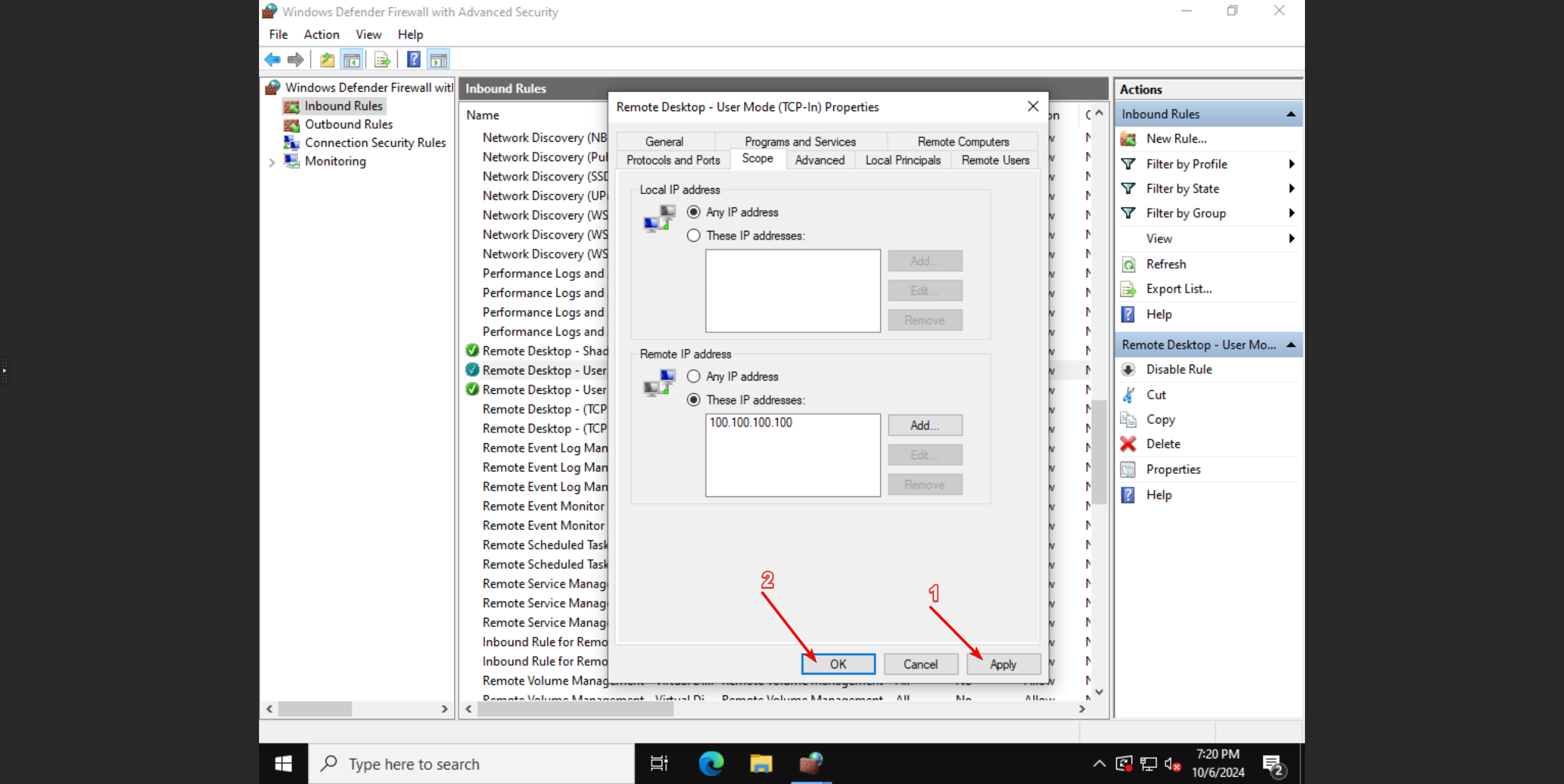 Hieronder vindt u een handleiding voor het beperken van de toegang tot Remote Desktop tot specifieke IP-adressen: