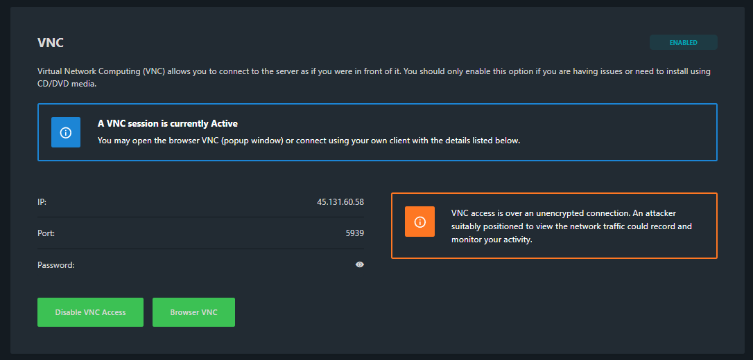 Klik op "Enable VNC Access"